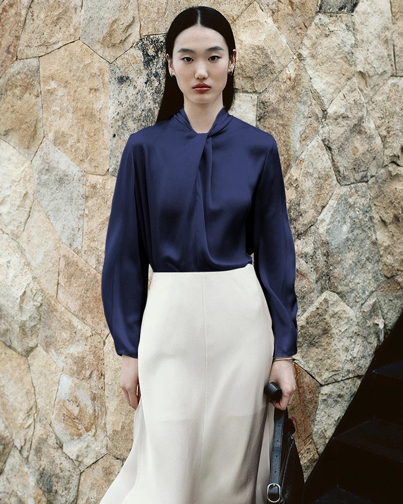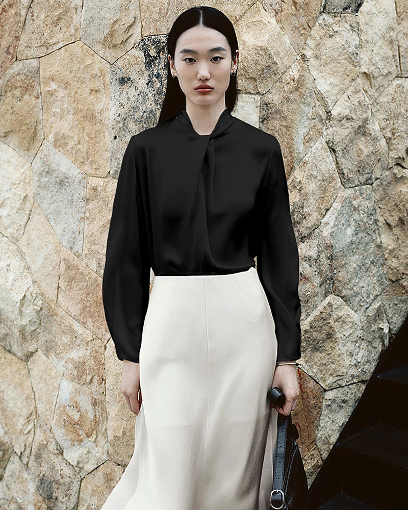 Crafted from premium 25 momme silk crepe de chine, this blouse stands out for its durability, density, and elegant finish.