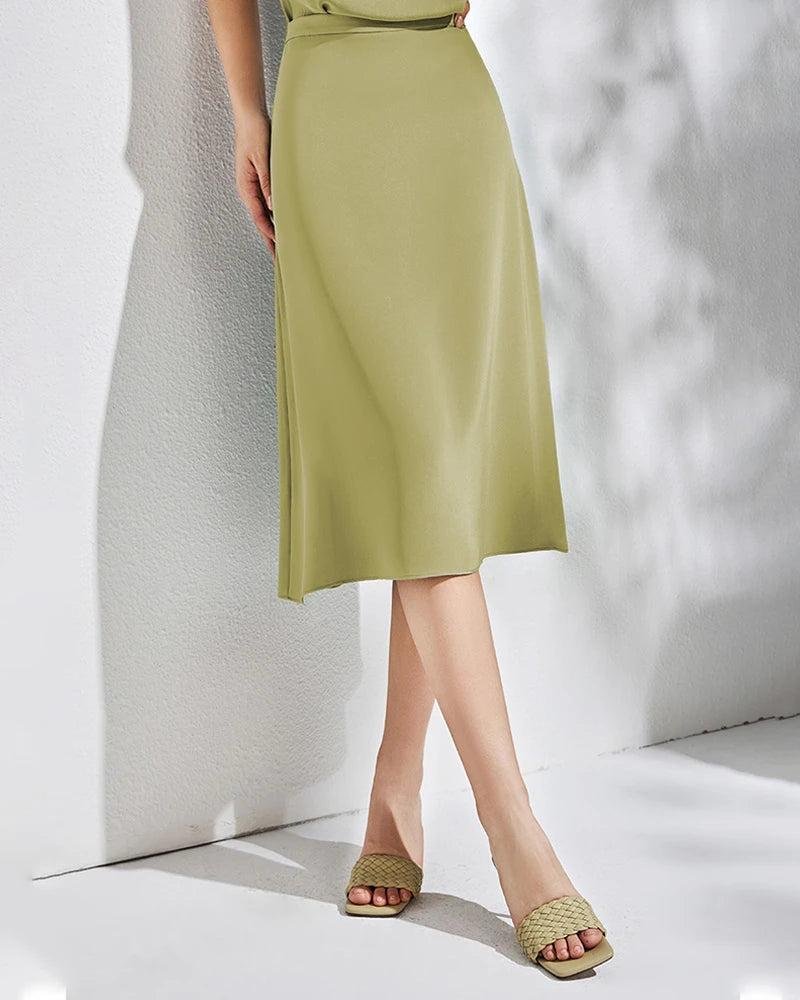 Available as a classic silk slip skirt or green silk skirt option, it is versatile enough to pair with blouses, sweaters, or tees.