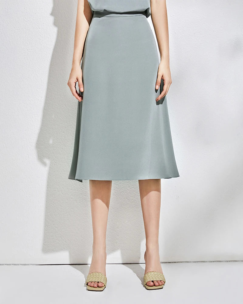 Its sleek finish makes it an essential silk skirt women style, from silk midi skirt for everyday wear to green satin skirt looks for special occasions.