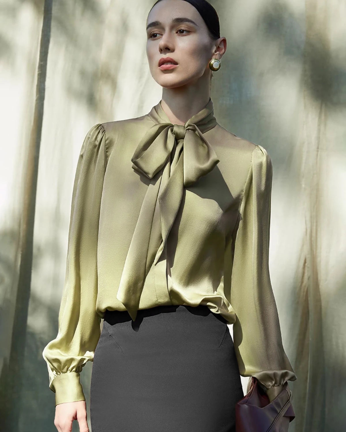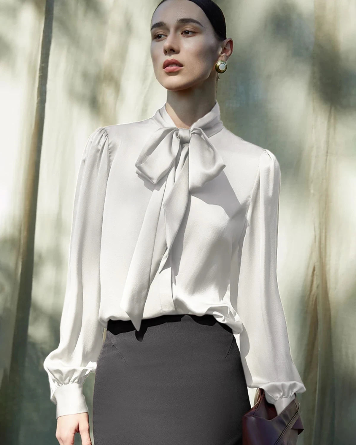 The refined tie-neck detail adds versatility — wear it as a pussy bow blouse for a polished look, or style it loosely for a relaxed yet chic appearance.