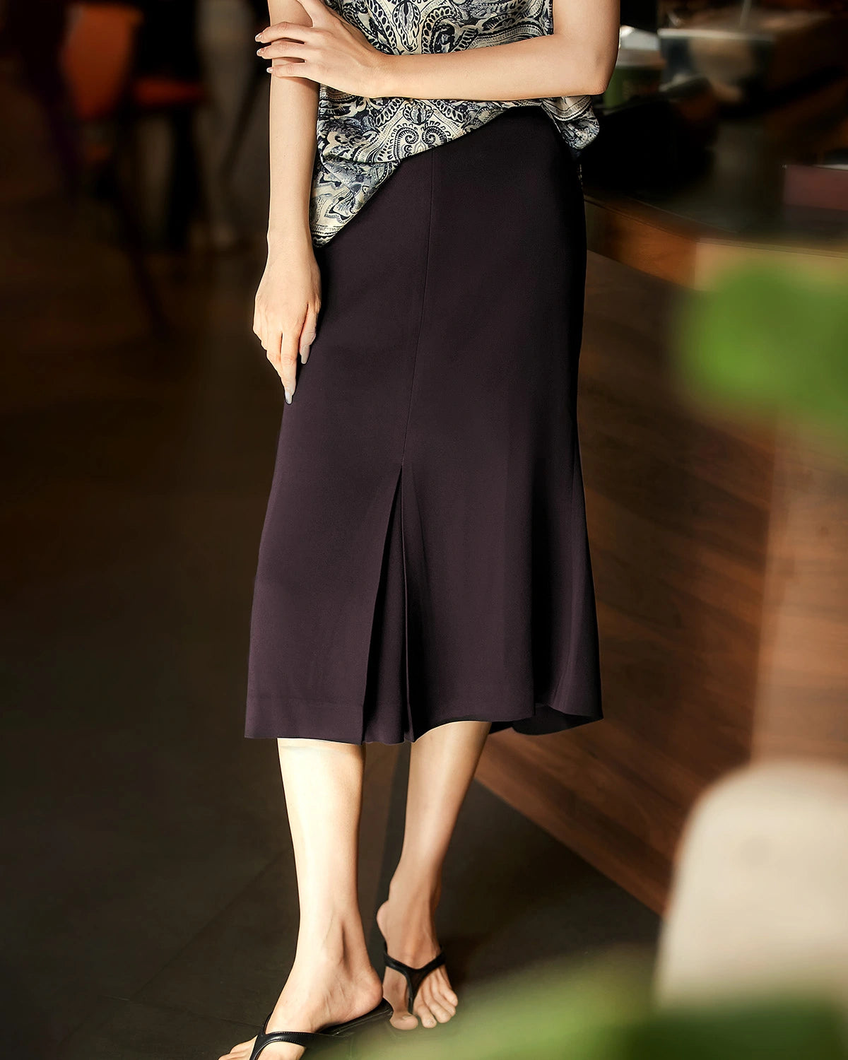 Featuring a flattering mermaid silhouette and a hidden slit, this A line midi skirt creates graceful movement with every step. Its high waisted midi skirt fit sculpts the waist, while the flowy flared hem adds a feminine touch. Available as a black silk skirt or white midi skirt, it blends modern chic with timeless sophistication.