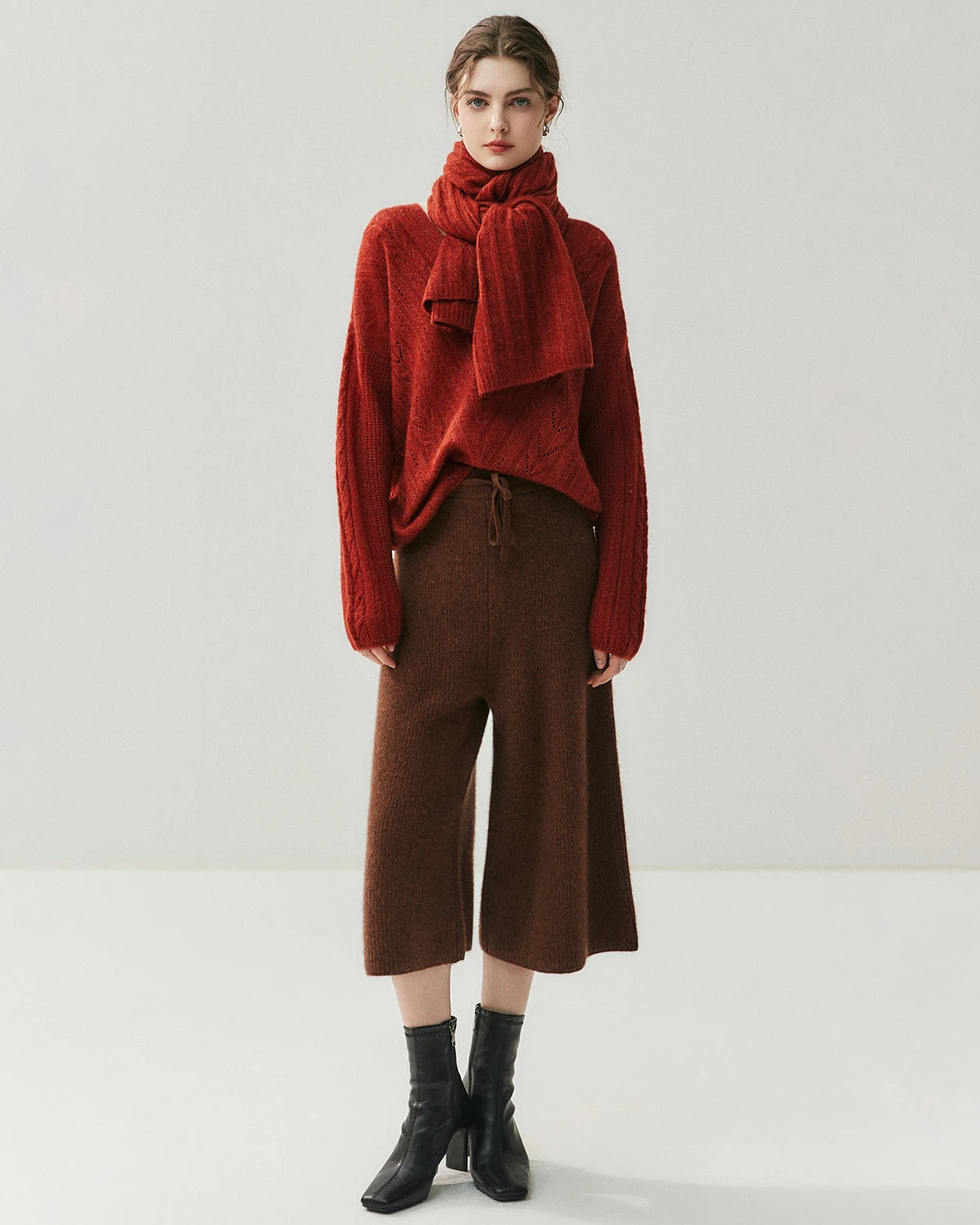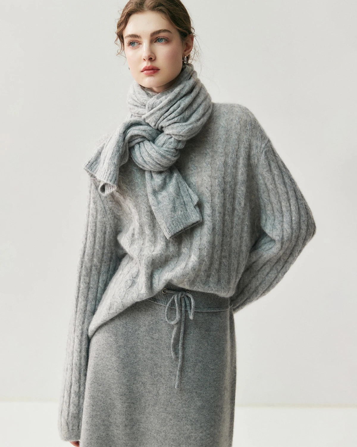 Oversized cashmere sweaters bring the perfect blend of comfort and oversized style. Pair them with loose jeans or a long coat for a relaxed yet chic look. A 100% silk skirt and high boots offer a touch of sophistication, while sneakers and joggers exude casual charm. Add a cozy scarf and gloves for extra warmth, and complete the look with a carefree hairstyle.