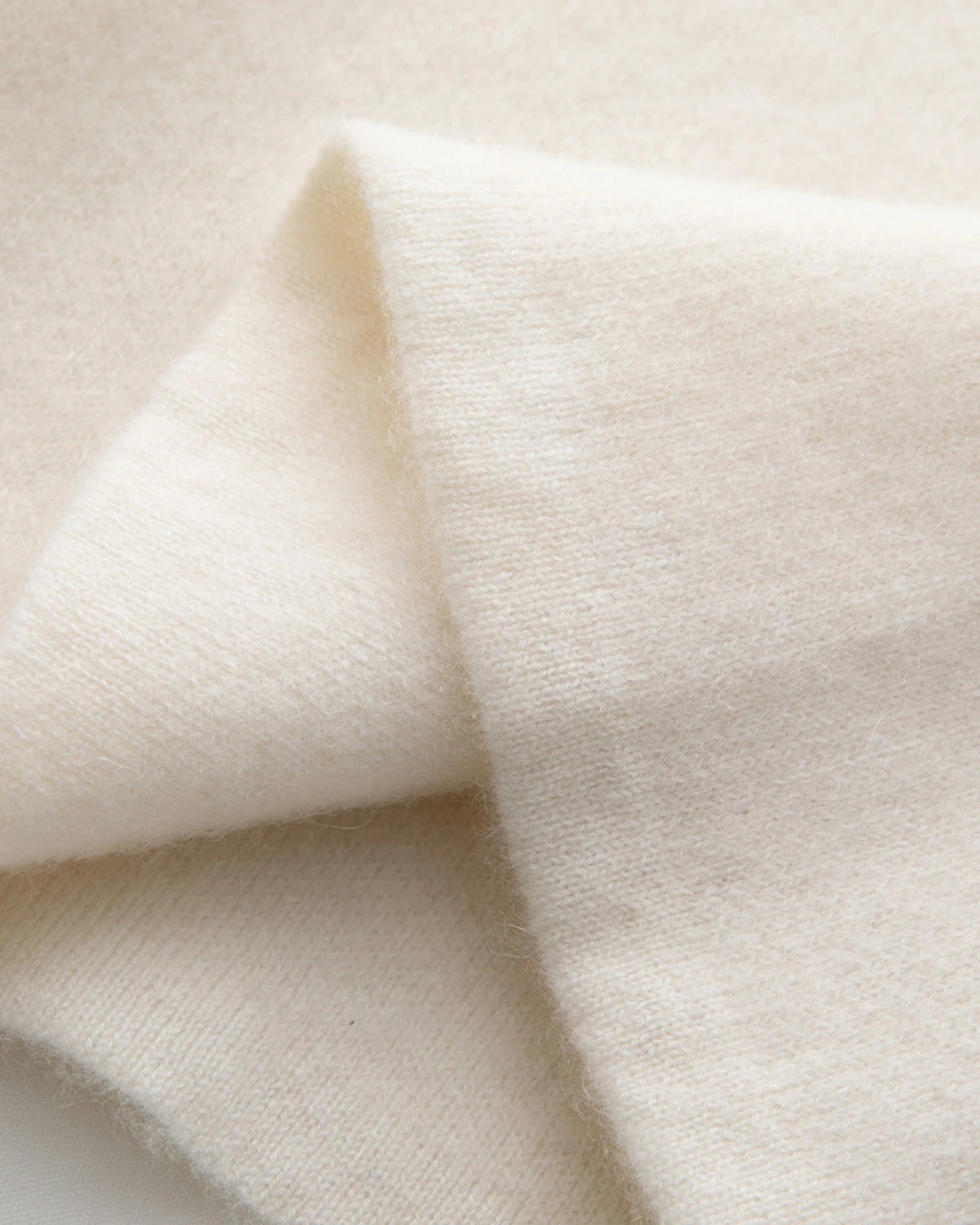 Sourced from the fine undercoat of cashmere goats, cashmere fibers are thinner, softer, and lighter than wool. These natural qualities give cashmere its warmth, unmatched softness, and ability to keep its shape. Wool fibers, with their coarser scales, tend to interlock and shrink when exposed to water and agitation. By contrast, cashmere is less prone to shrinking or stretching, which makes cashmere sweaters durable, versatile, and ideal for layering in cold weather.