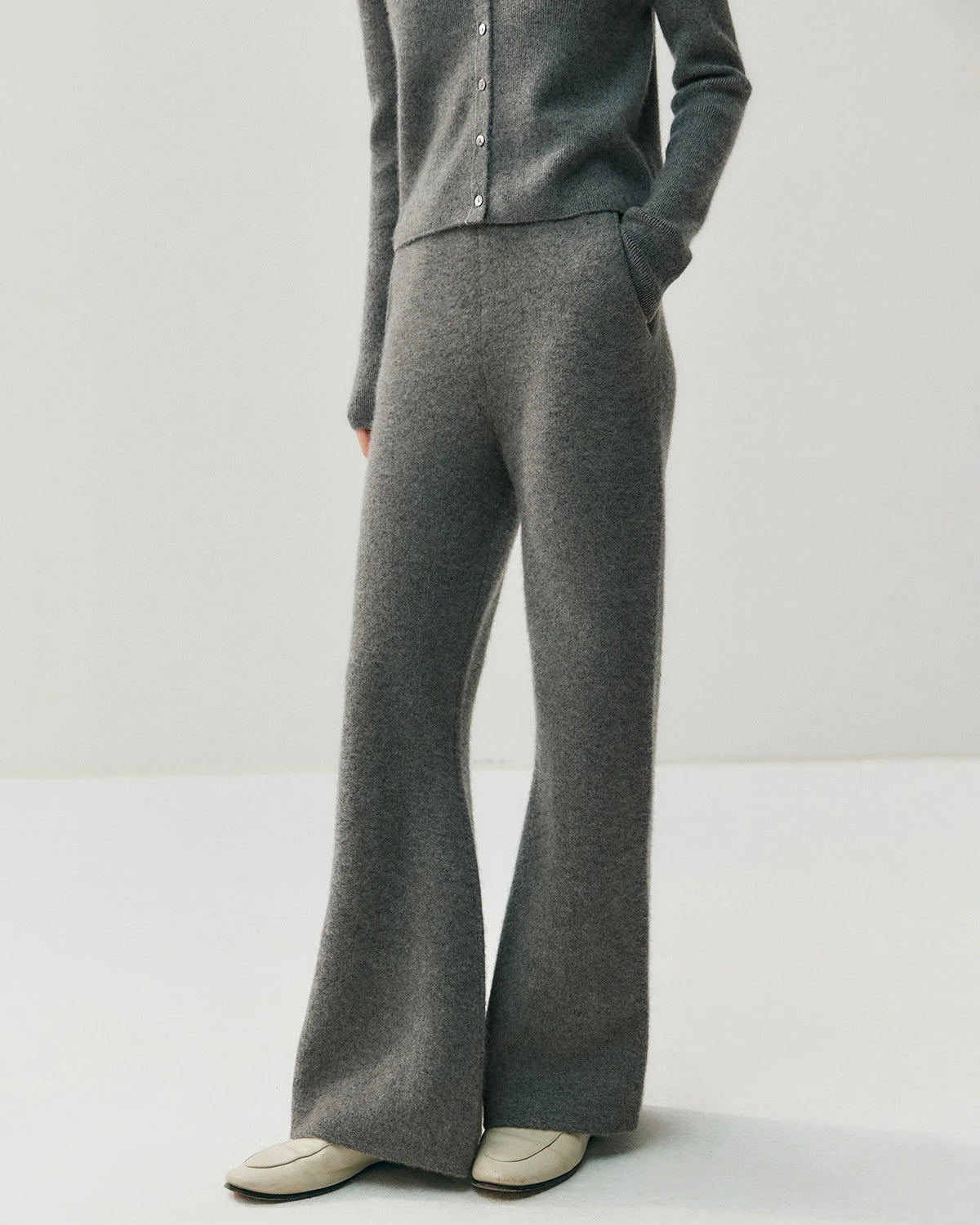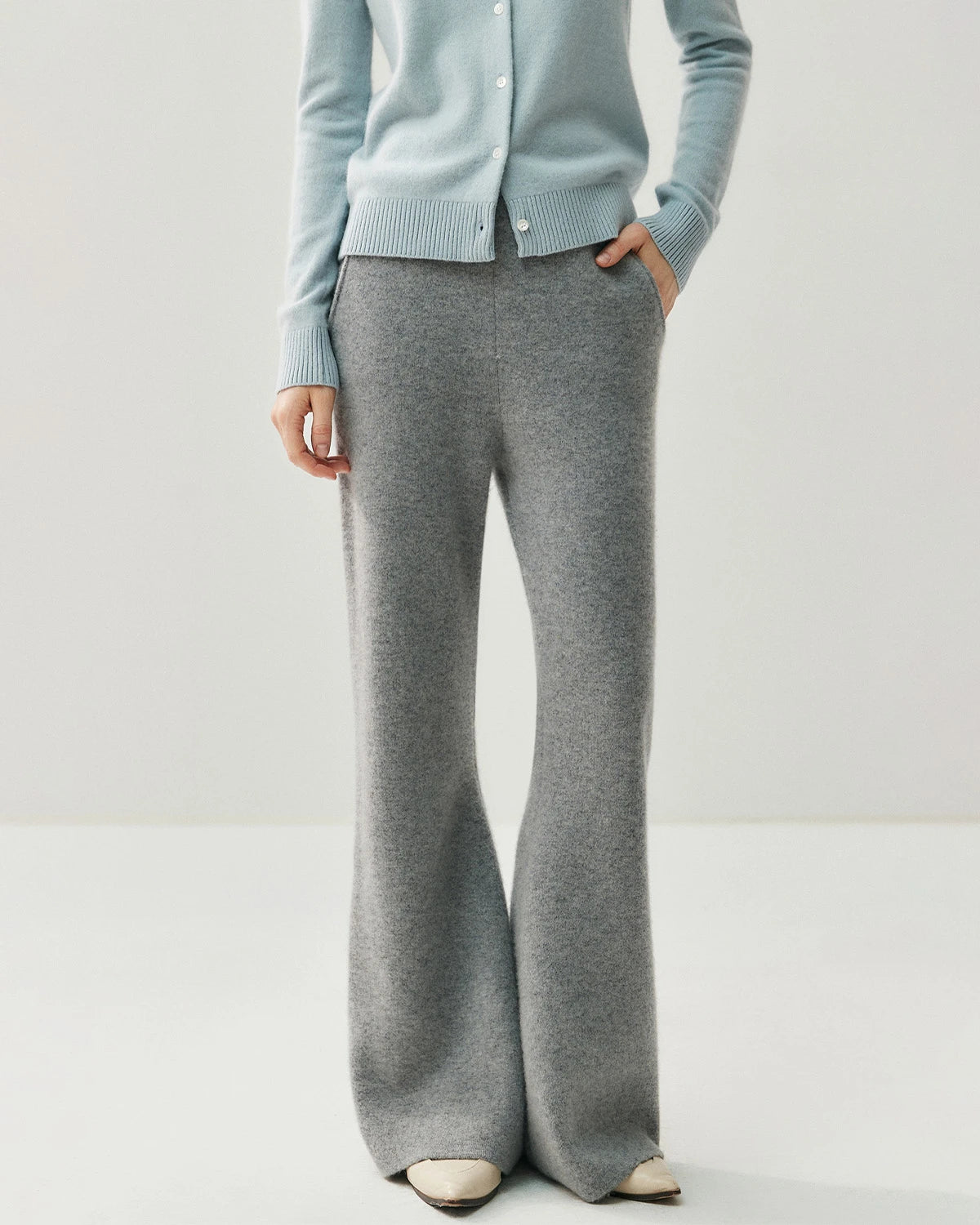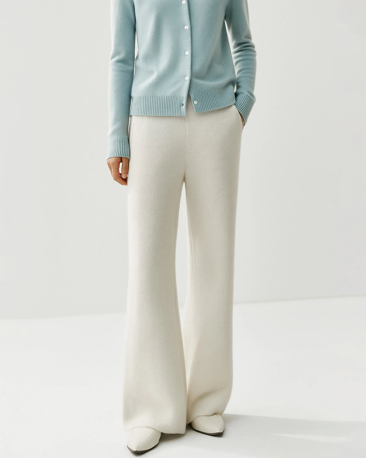 Elegant yet versatile, these cashmere knit pants transition effortlessly from home to street style. Pair them with a cashmere pullover or a fitted sweater for a complete look, or dress them up with boots for a modern, elevated outfit. A wardrobe essential among women’s cashmere trousers and knit pants collections.