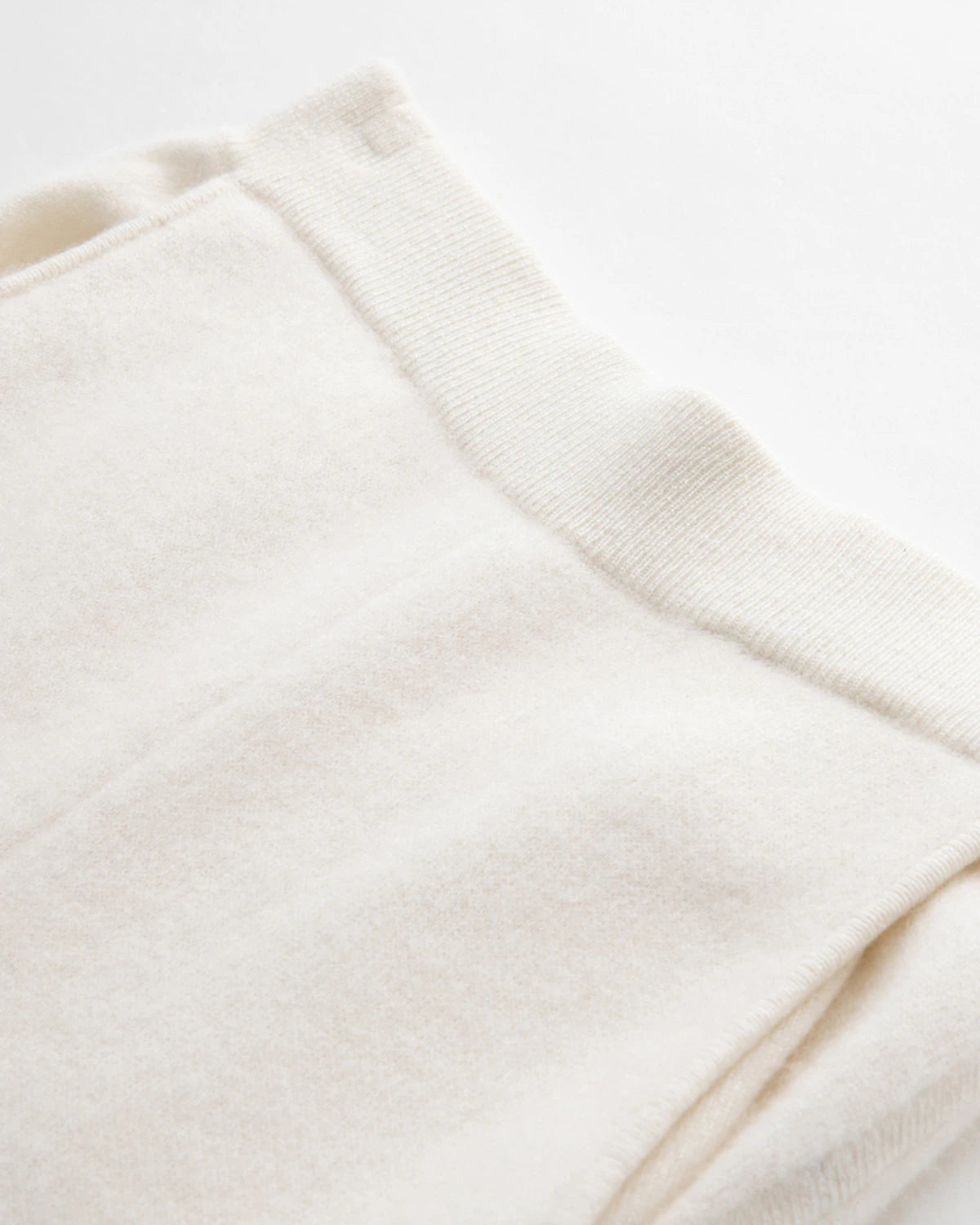 Crafted from a luxurious blend of 65% Australian wool and 35% cashmere, these knit pants offer exceptional softness, warmth, and natural elasticity. The fine-gauge cashmere wool fabric delivers a smooth, breathable feel that’s ideal for both lounging and refined daily wear.
