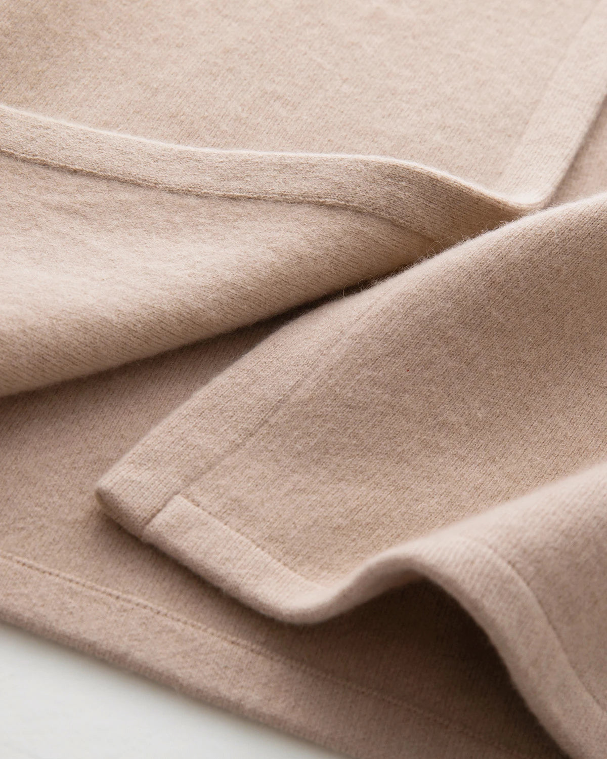 Sourced from the fine undercoat of cashmere goats, cashmere fibers are thinner, softer, and lighter than wool. These natural qualities give cashmere its warmth, unmatched softness, and ability to keep its shape. Wool fibers, with their coarser scales, tend to interlock and shrink when exposed to water and agitation. By contrast, cashmere is less prone to shrinking or stretching, which makes cashmere sweaters durable, versatile, and ideal for layering in cold weather.