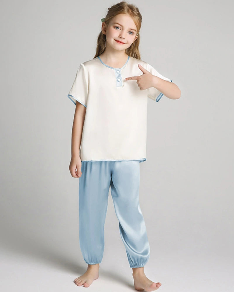 Perfect as kids silk pajamas, children’s sleepwear, or eczema-friendly nightwear, this pajama set combines luxurious comfort with thoughtful skin care—helping your child sleep better, longer, and more peacefully.