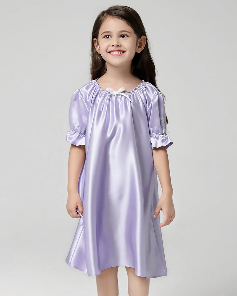 Crafted from premium silk, the nightgown feels soft and breathable against the skin, helping reduce friction and irritation. Its lightweight drape allows easy movement, making it perfect for nighttime comfort, indoor lounging, or relaxed weekends at home. This style is ideal for girls who prefer smooth, cooling fabrics that support sensitive or easily irritated skin.
