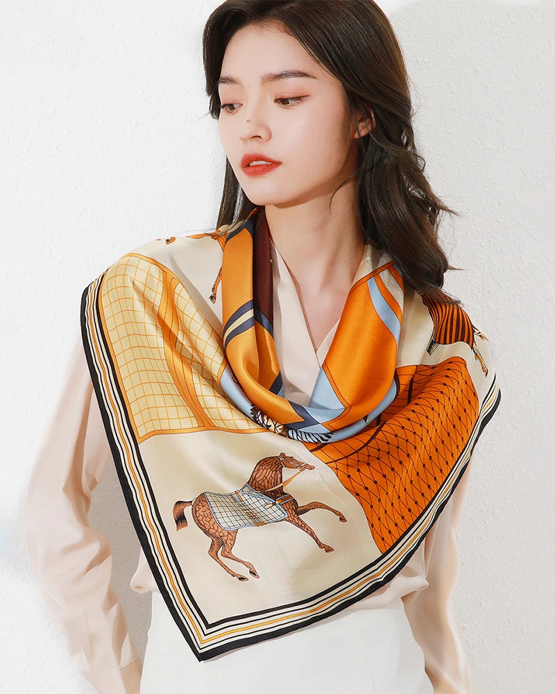 Perfect for casual, formal, or creative fashion styling, this vintage horse silk scarf elevates any outfit with versatile sophistication.