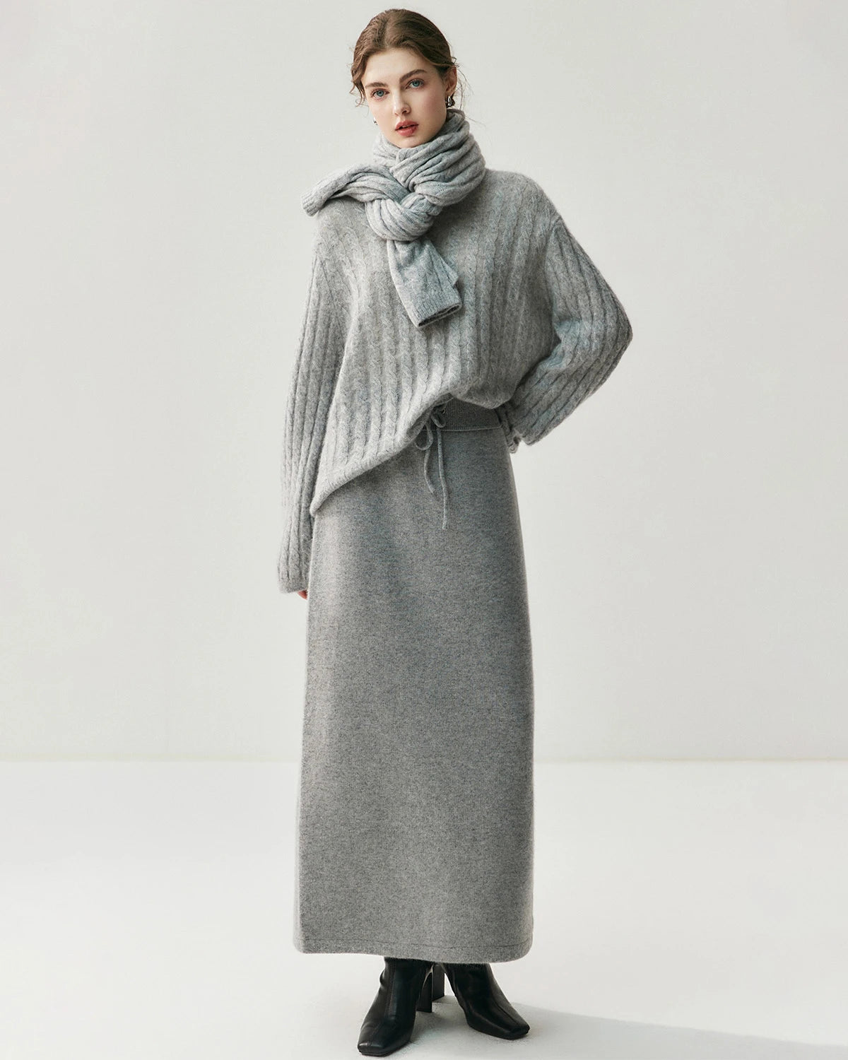 Oversized cashmere sweaters bring the perfect blend of comfort and oversized style. Pair them with loose jeans or a long coat for a relaxed yet chic look. A 100% silk skirt and high boots offer a touch of sophistication, while sneakers and joggers exude casual charm. Add a cozy scarf and gloves for extra warmth, and complete the look with a carefree hairstyle.
