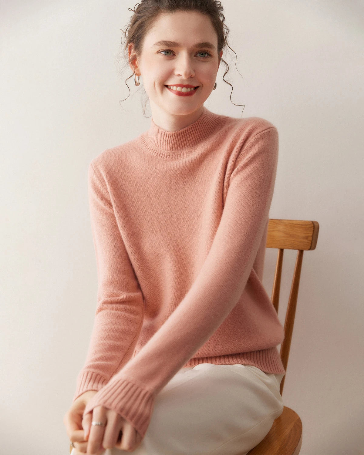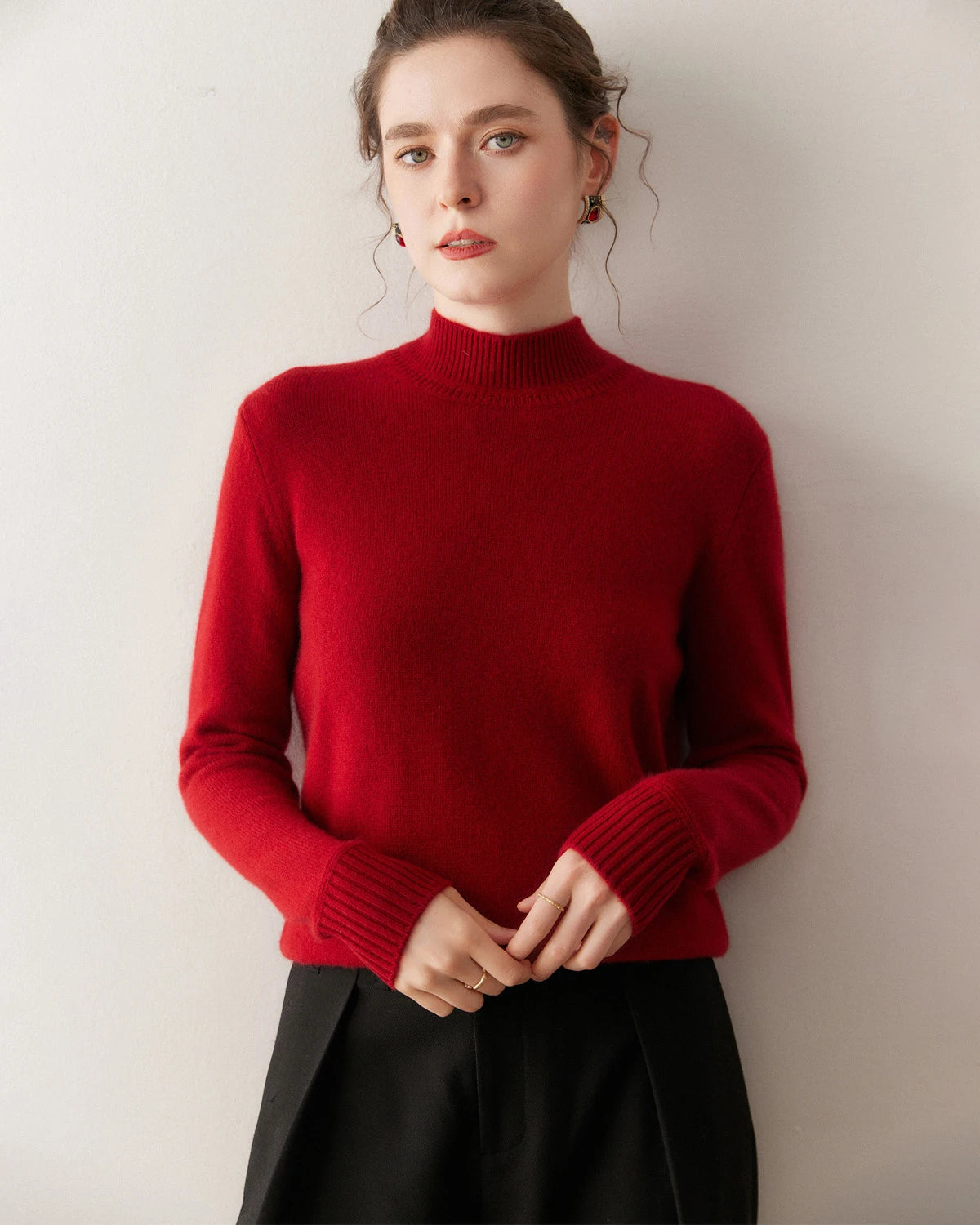 Fitted Embrace cashmere sweaters bring a sense of intimate elegance and are perfect for highlighting your figure. Try pairing them with a pencil skirt and heels for a sophisticated look or with skinny jeans and ankle boots for a chic ensemble. You can also accessorize with layered necklaces, a tailored blazer, or a waist belt. Complete your outfit with statement earrings and an elegant updo for a refined and stylish appearance.