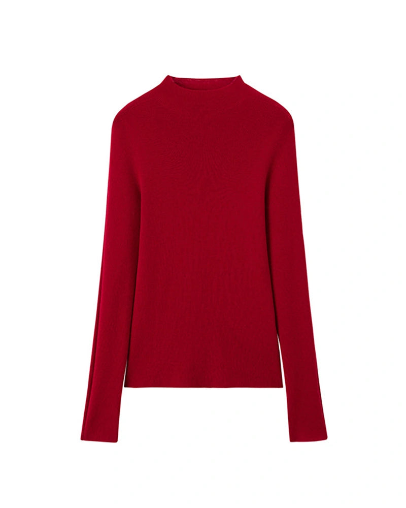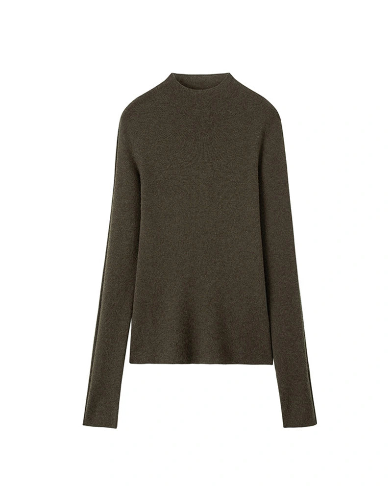 This lightweight cashmere sweater features a refined small mock neck and a slim, feminine silhouette. Designed as a seamless knit base layer, it can be worn on its own or layered under coats and blazers. Available in classic shades such as black cashmere sweater, white cashmere sweater, and camel cashmere sweater, it embodies minimalist elegance.