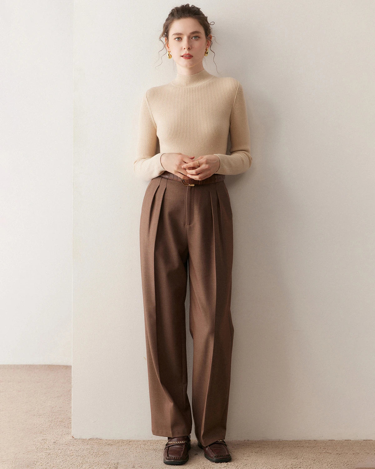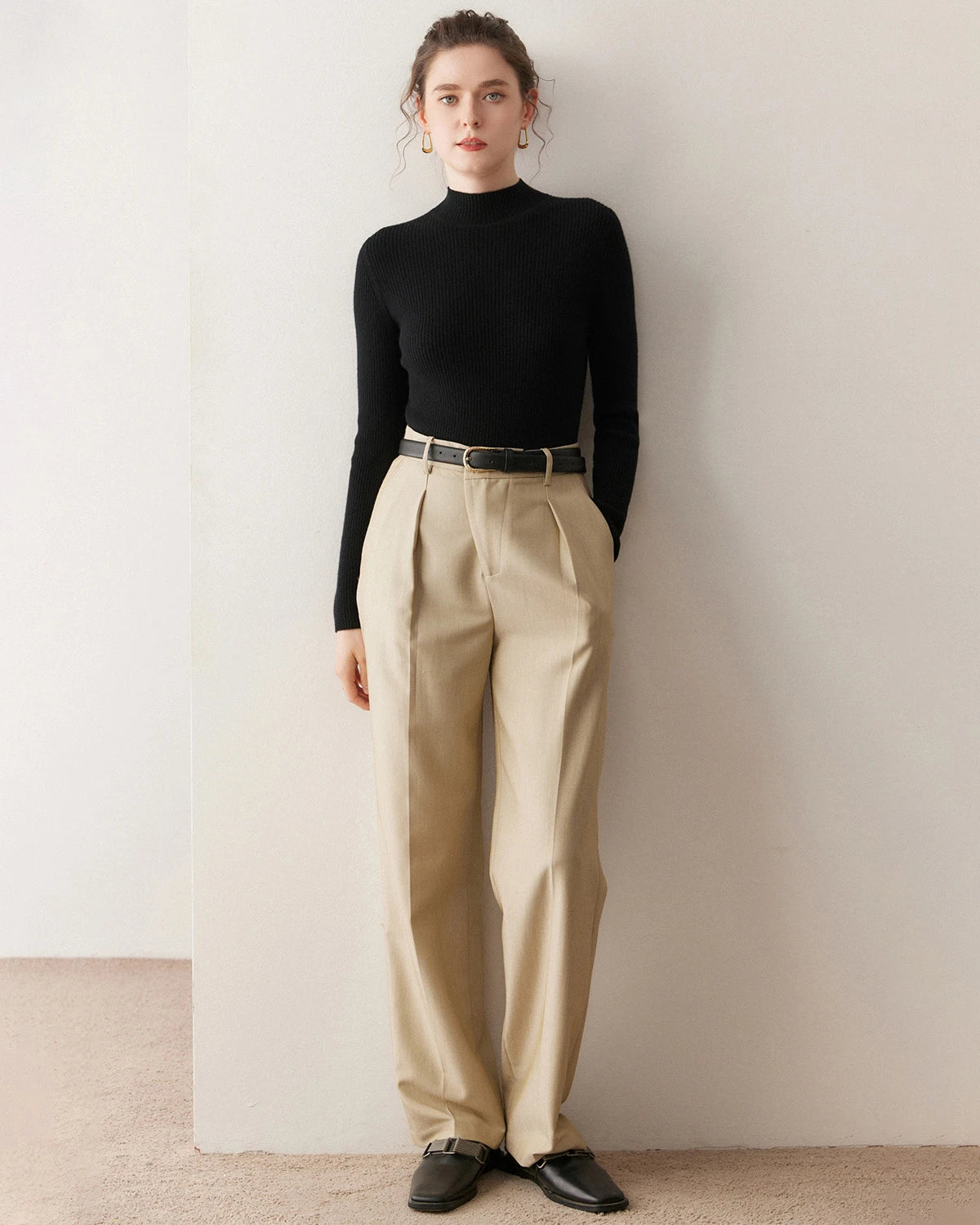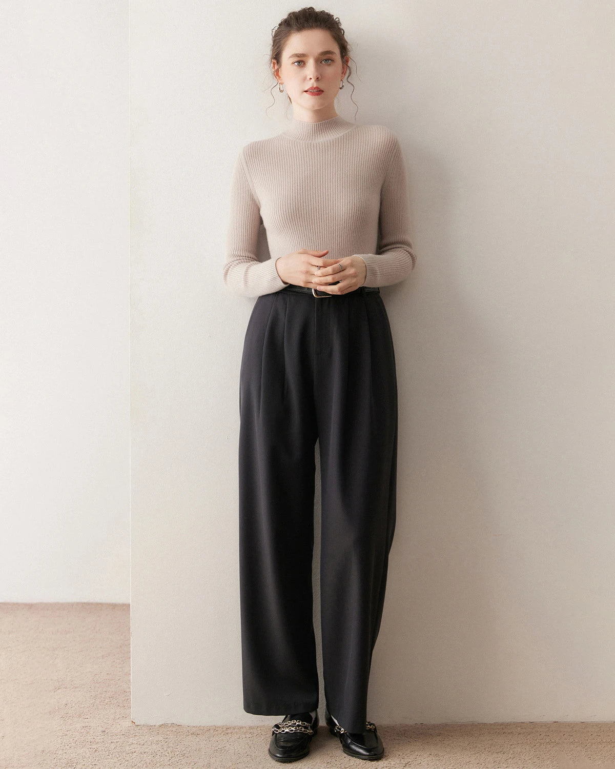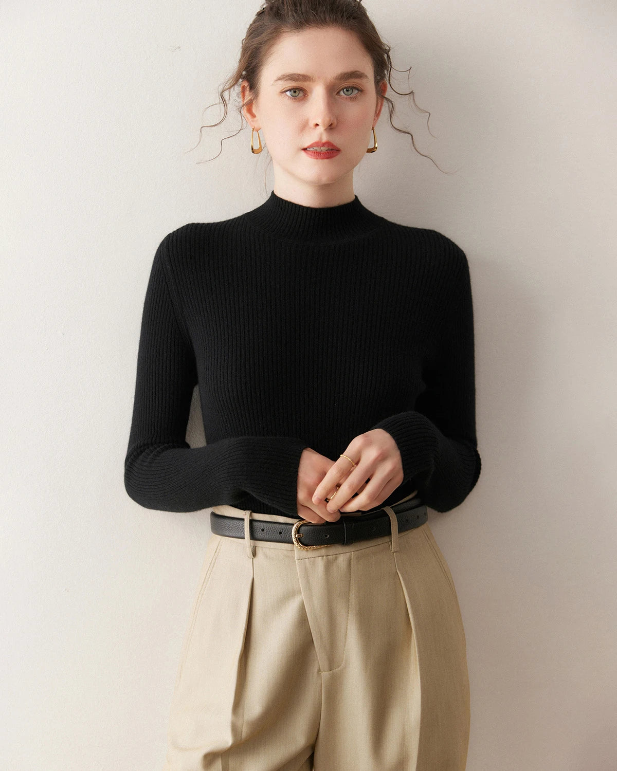 Fitted Embrace cashmere sweaters bring a sense of intimate elegance and are perfect for highlighting your figure. Try pairing them with a pencil skirt and heels for a sophisticated look or with skinny jeans and ankle boots for a chic ensemble. You can also accessorize with layered necklaces, a tailored blazer, or a waist belt. Complete your outfit with statement earrings and an elegant updo for a refined and stylish appearance.