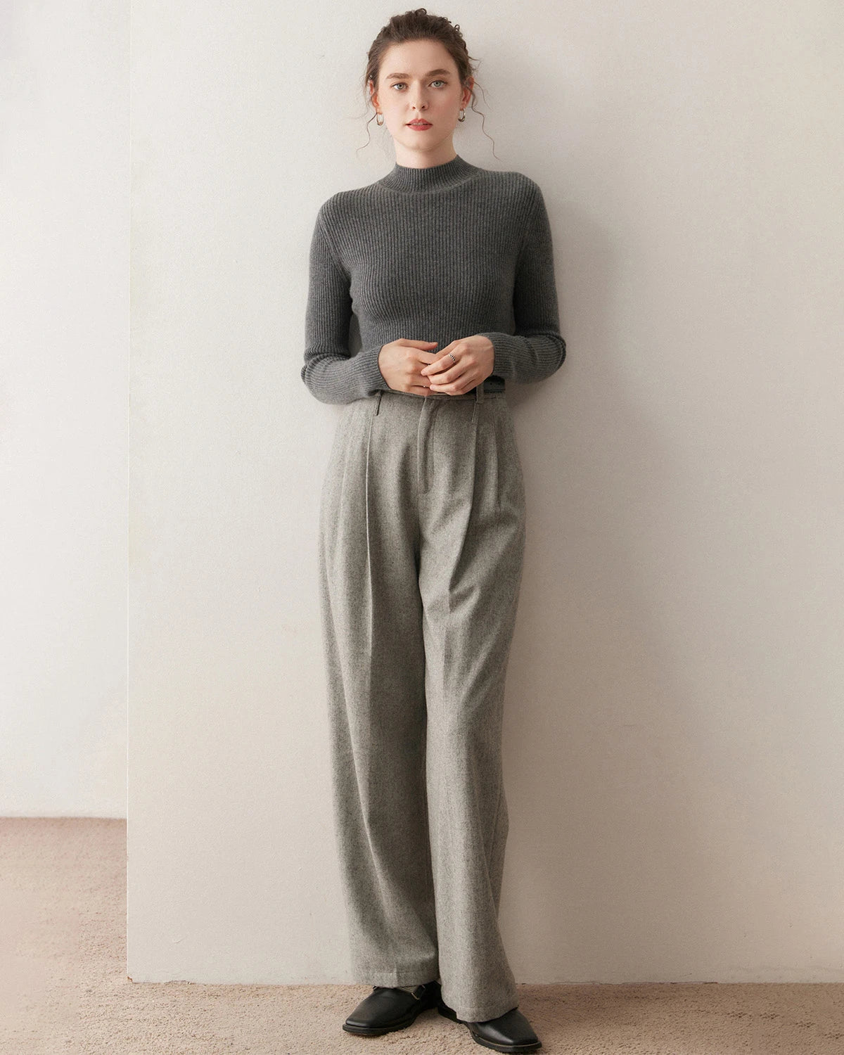 Oversized cashmere sweaters bring the perfect blend of comfort and oversized style. Pair them with loose jeans or a long coat for a relaxed yet chic look. A 100% silk skirt and high boots offer a touch of sophistication, while sneakers and joggers exude casual charm. Add a cozy scarf and gloves for extra warmth, and complete the look with a carefree hairstyle.