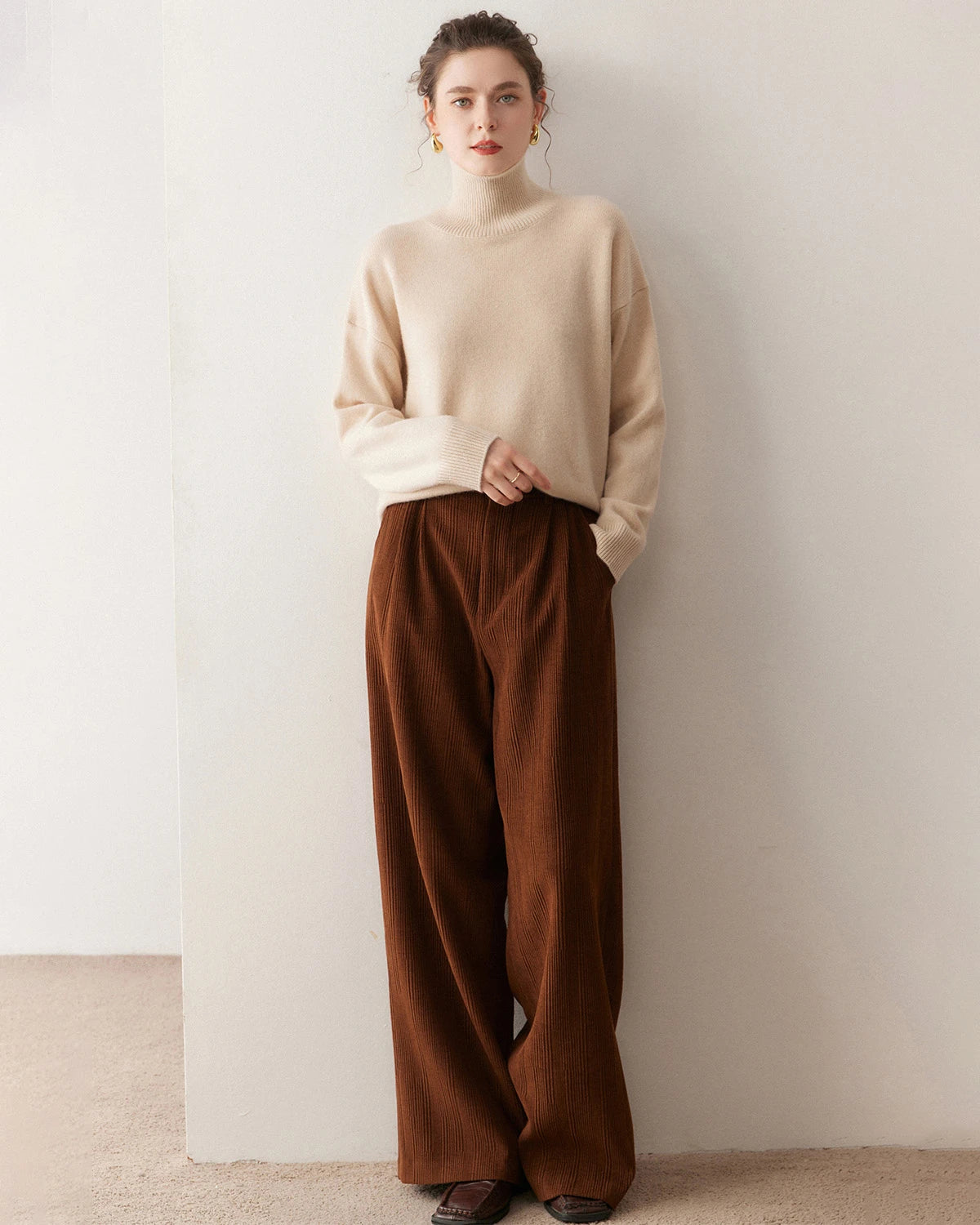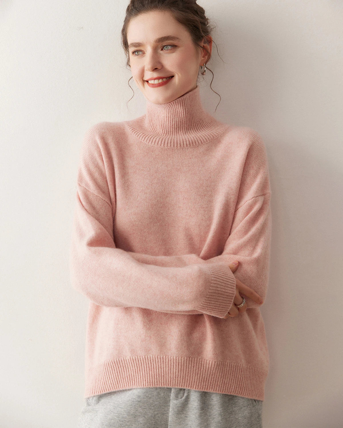 Easy to style with jeans, skirts, or tailored pants, this ladies cashmere sweater is perfect for effortless layering. The high neck keeps you warm while the roomy shape ensures freedom and comfort — a timeless piece among cashmere garments that transitions from casual to chic with ease.