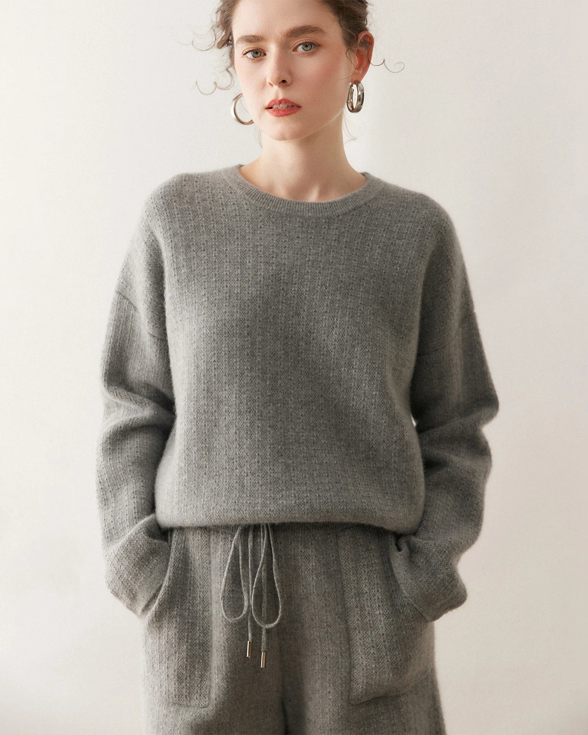 Crafted from a premium blend of 65% fine Australian wool and 35% pure cashmere, this women’s cashmere set offers the perfect fusion of softness, warmth, and breathability. The delicate knit structure creates a smooth, skin-friendly touch that drapes bWomen Cashmere Sweaterseautifully. Lightweight yet cozy, it’s ideal for year-round wear—luxuriously comfortable as a cashmere lounge set or an elevated daily outfit.