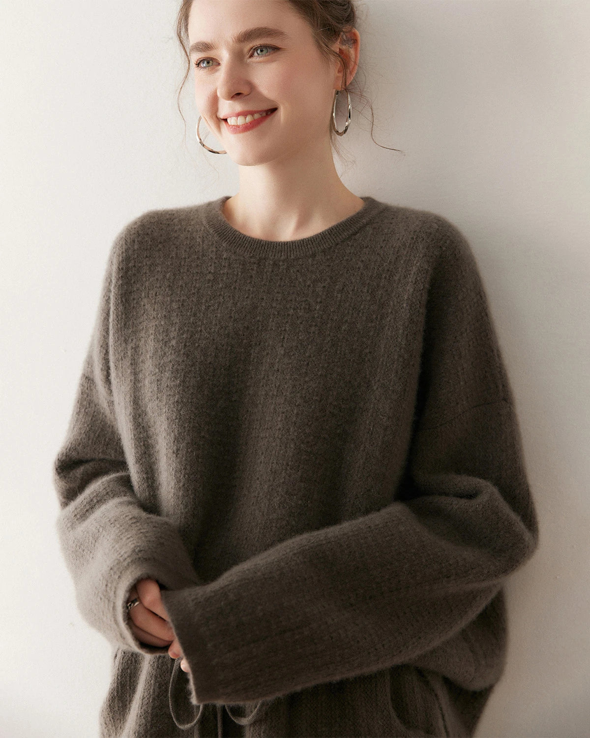 Oversized cashmere sweaters bring the perfect blend of comfort and oversized style. Pair them with loose jeans or a long coat for a relaxed yet chic look. A 100% silk skirt and high boots offer a touch of sophistication, while sneakers and joggers exude casual charm. Add a cozy scarf and gloves for extra warmth, and complete the look with a carefree hairstyle.