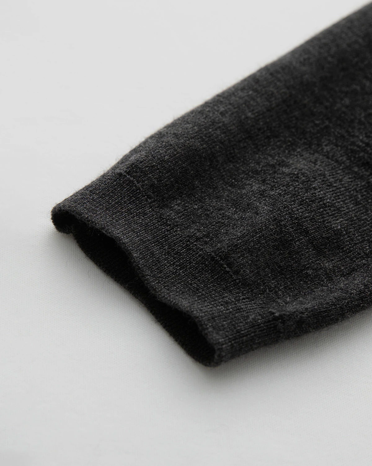 Sourced from the fine undercoat of cashmere goats, cashmere fibers are thinner, softer, and lighter than wool. These natural qualities give cashmere its warmth, unmatched softness, and ability to keep its shape. Wool fibers, with their coarser scales, tend to interlock and shrink when exposed to water and agitation. By contrast, cashmere is less prone to shrinking or stretching, which makes cashmere sweaters durable, versatile, and ideal for layering in cold weather.