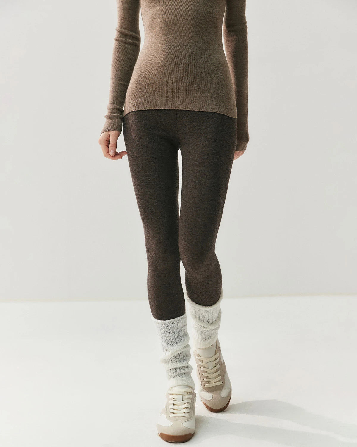 Designed in a slim fit silhouette, these women’s wool pants provide a sleek and comfortable look that flatters the body’s curves. The minimalist style transitions effortlessly from loungewear to layering essentials, making them ideal as thermal wear leggings or ladies wool pants. Perfectly combining practicality and elegance, they redefine classic long johns for women with a refined modern edge.